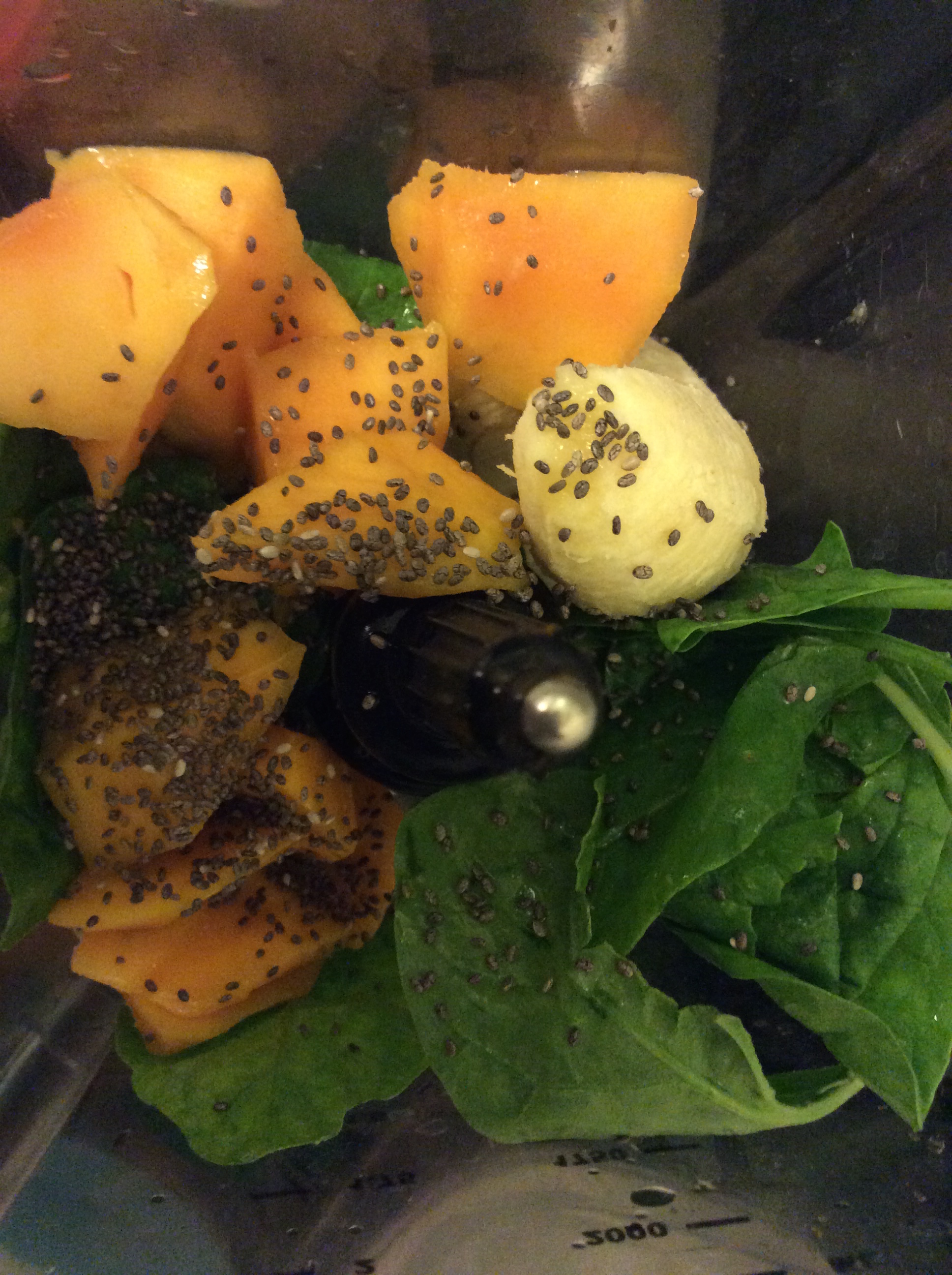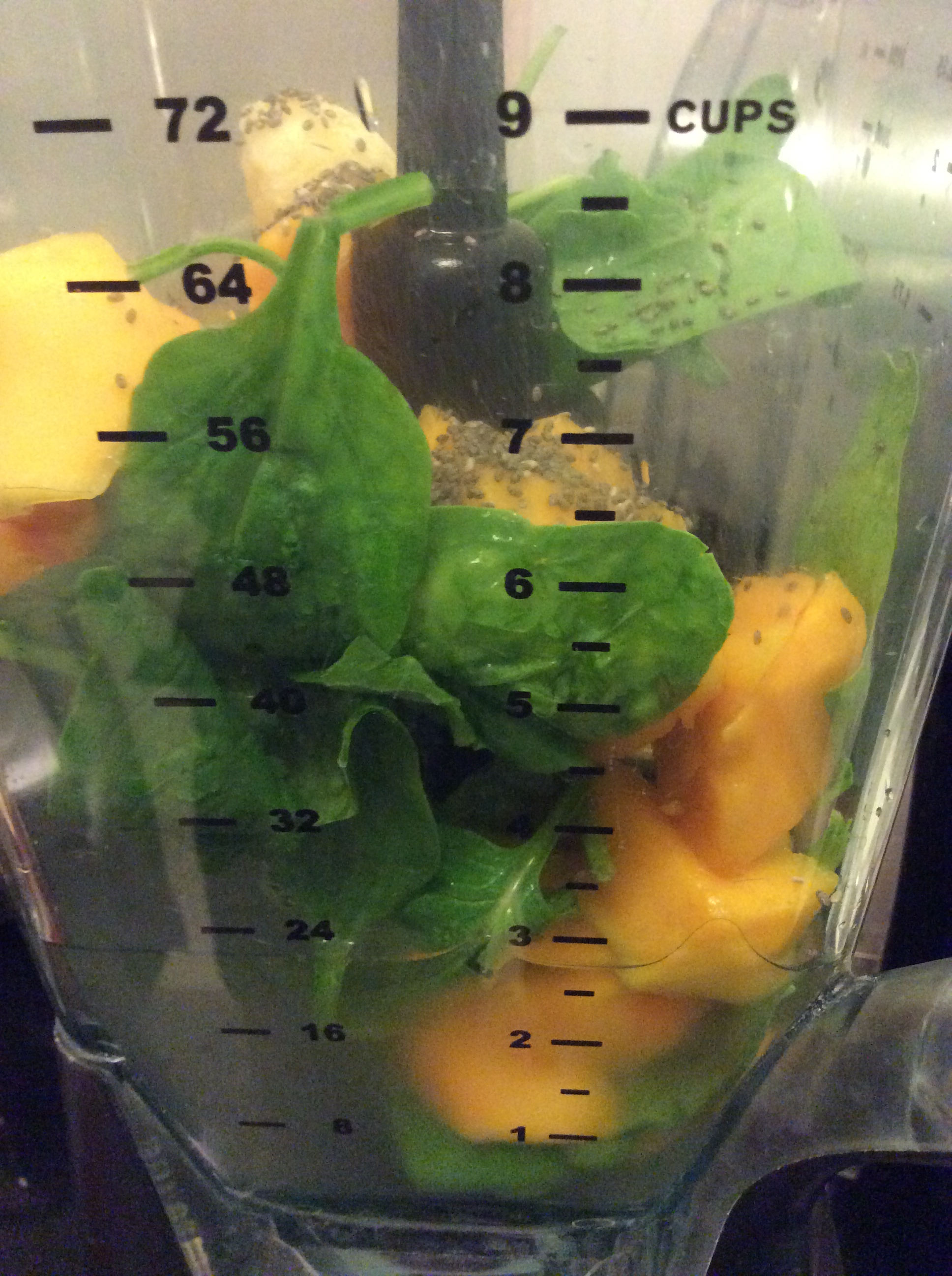 Started today off right with a spinach, mango, banana, chia, coconut water smoothie. So easy, so good, so healthy. And my kids loved it.