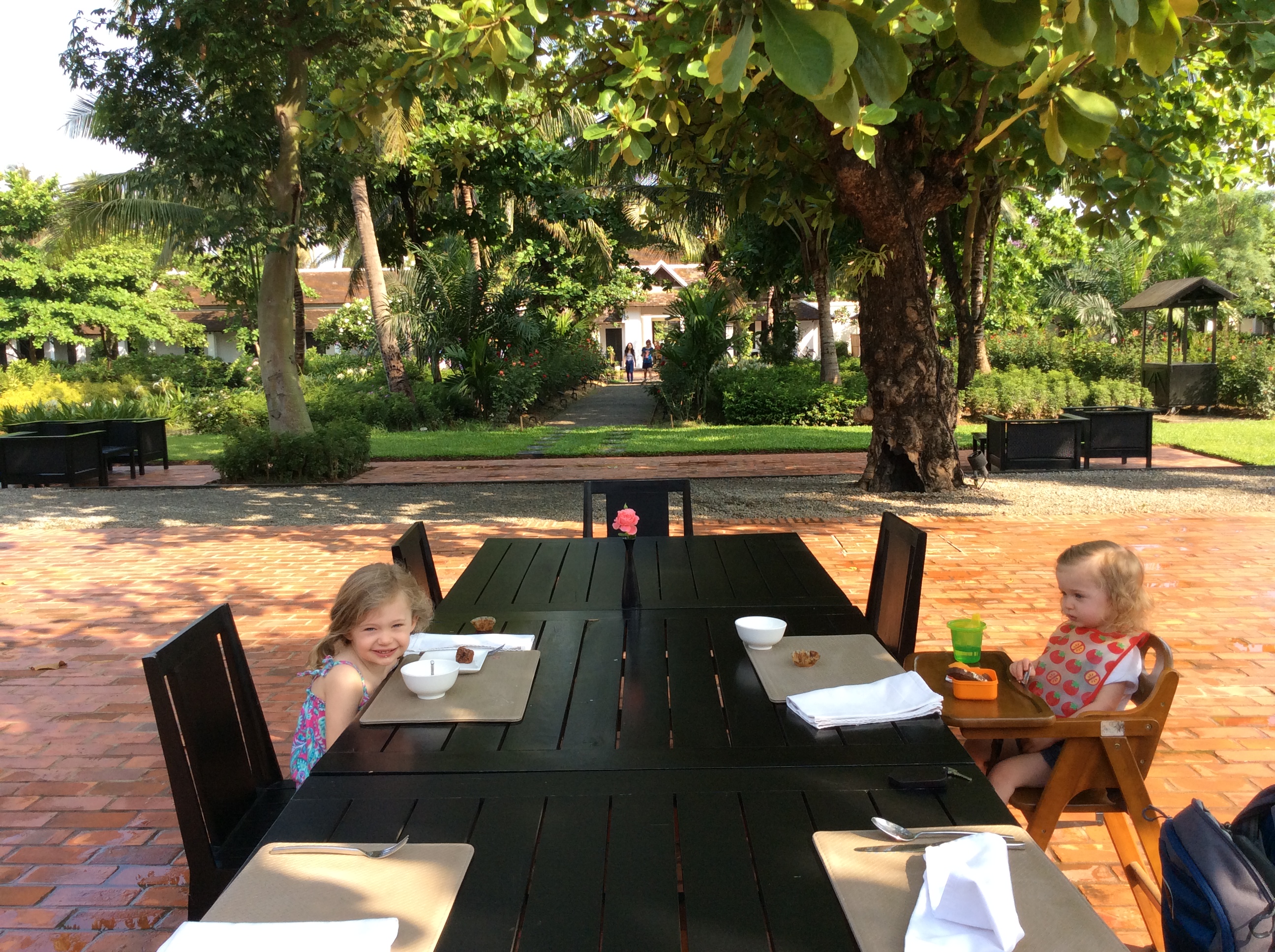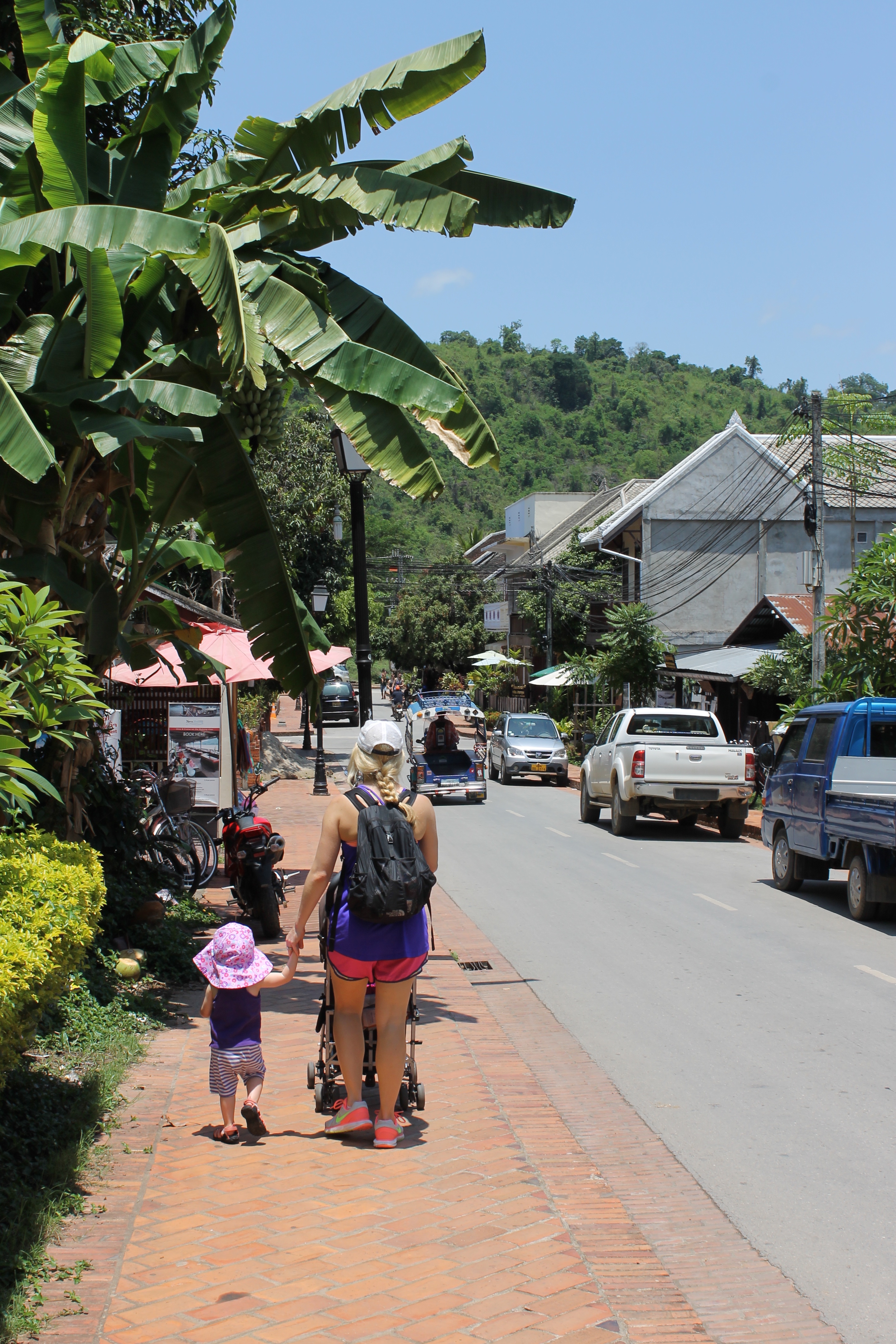 Luang Prabang is one of the more child-friendly cities I’ve visited in Southeast Asia. There are plenty of fairly wide and obstruction-free sidewalks, making it (relatively) stroller friendly. Most of the restaurants we visited (more on this to come!) had high chairs and were kid-friendly. Additionally, the tourist activities – riverboat cruise, night market, elephant rides (more on these to come too!) – welcomed kids, (although if you’re safety–minded, I recommend bringing life jackets from home).
